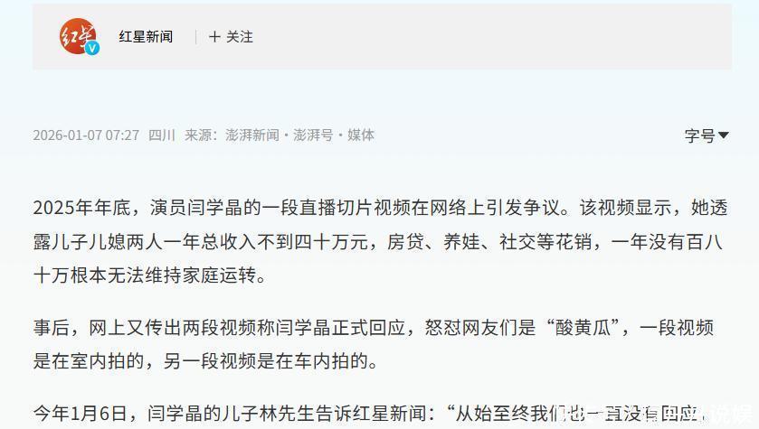 两种演员生态闫学晶的“翻车”,核心可能不在于她“哭穷”,而在于她无意识中流露出的 “参照系”错位,她用自己所在的、相对富裕的圈层的生活成本,去衡量普通年轻人的生存压力,并且用公开倾诉的方式表达出来,